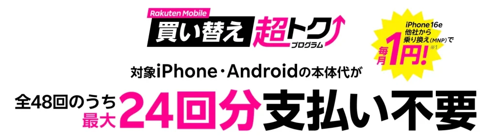 | 楽天モバイル | 買い替え超トクプログラム | 24ヶ月目 |