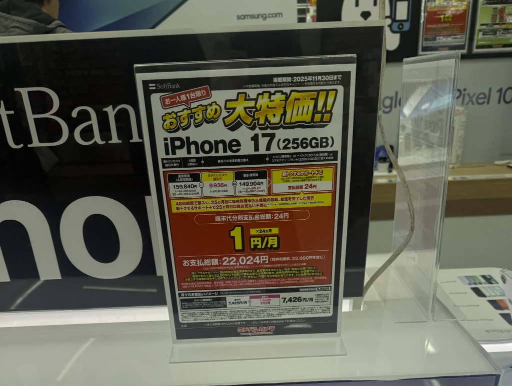 | iPhone17 | 1円 * 24ヶ月 |