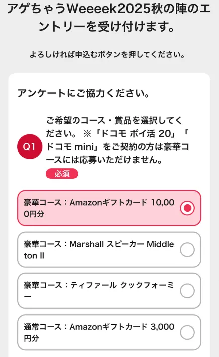 特典の受け取りには、事前のエントリーとdアカウントが必要です。