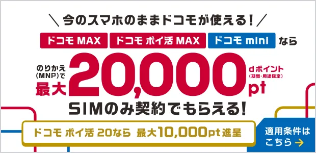![]() | dポイント20,000円分 | 他社から乗り換え |