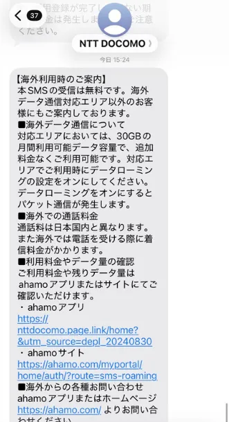 すぐに接続完了の案内SMSが届き、そのままネットが使えます。 旅行前にわざわざSIMカードを手配する手間もなく、非常にスムーズです。