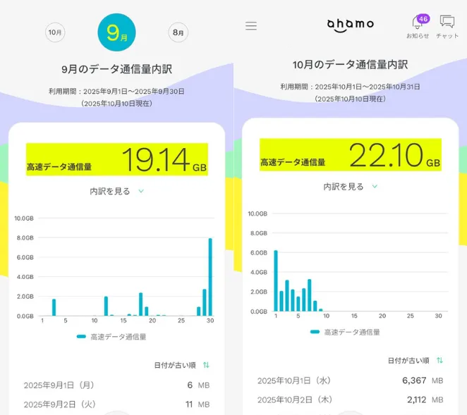 ahamoのデータ容量は、毎月1日にリセットされます。そのため、月をまたいで滞在するスケジュールであれば、前月分と当月分をそれぞれフルに使える計算になります。
