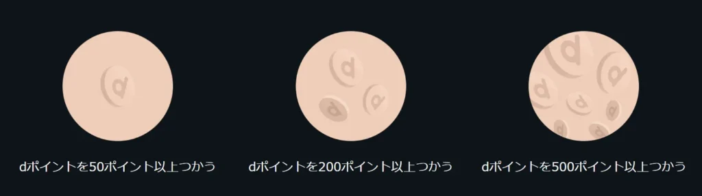 | スタンプ3 | 500ポイントを利用 | 10ptプレゼント または抽選で6,000pt |