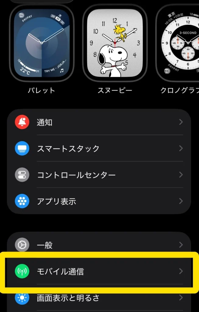 また、Apple Watchの通信に対応していない通信プランを契約している場合も、「モバイル通信」の項目は表示されません。