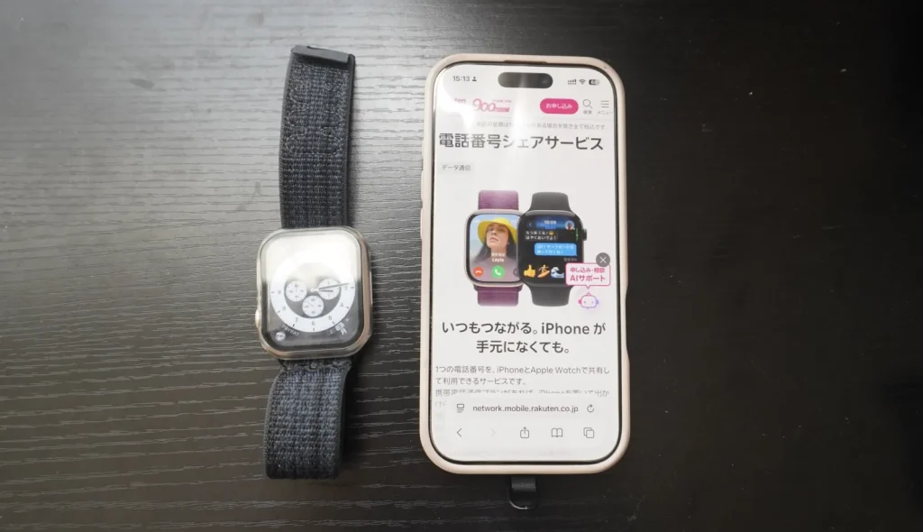 楽天モバイルは月額550円(税込)で、iPhone(親回線)とApple Watch(セルラーモデル)を同一番号で運用できます。