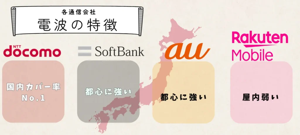 ただし、キャリアごとに電波の特性が異なるため、これまで問題なく使えていたエリアでも、乗り換え後に電波が入りにくくなる可能性があります。