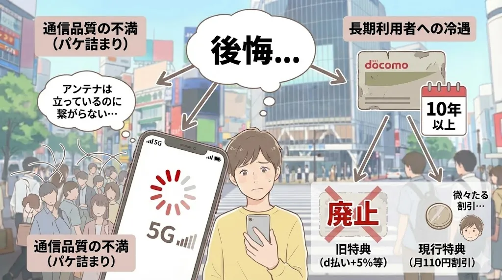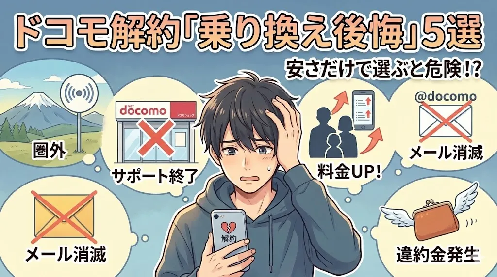 特に、月額料金の安さだけに惹かれて他社へ乗り換えた結果、「こんなことならドコモのままにしておけばよかった」と後悔するケースが後を絶ちません。