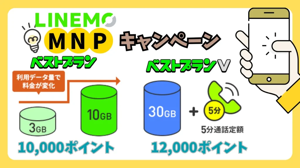 LINEMOの「最大12,000ポイント」および「最大10,000ポイント」がもらえるキャンペーンは、LINEMOを初めて契約する方が対象です。