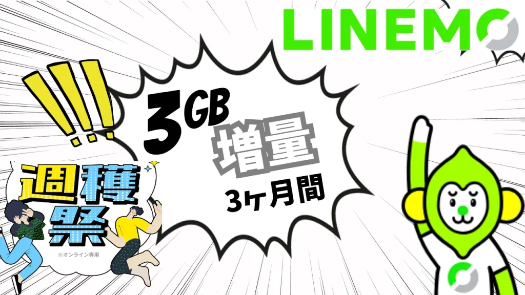 LINEMOでは、契約の翌月から3か月間、毎月3GBの追加データが無料で利用できるキャンペーンを実施しています。