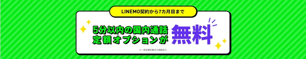 LINEMOでは、契約から7ヶ月目まで通話オプションが550円割引で利用できる「通話オプション割引キャンペーン2」を実施しています。