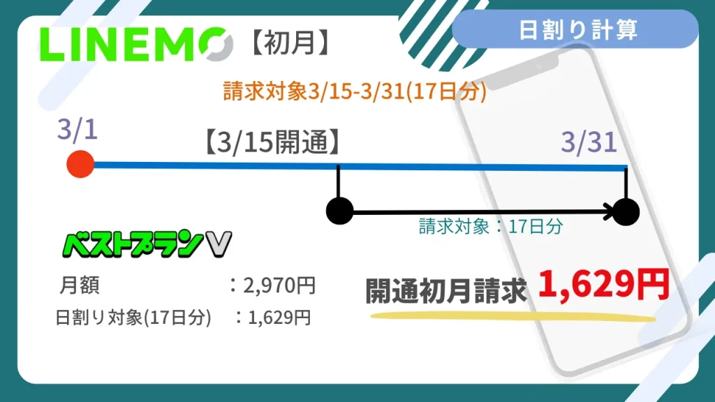 LINEMOの初月料金は、契約日から月末までの日数に応じて日割り計算されます。