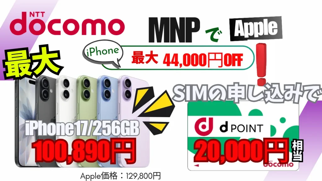 ドコモ MAX ドコモ mini 乗り換えキャンペーン iPhoneが最大44,000円割引