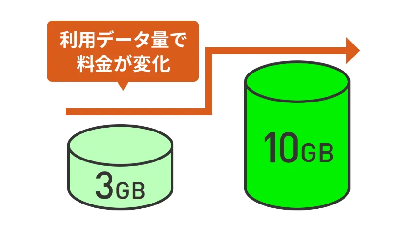 楽天モバイルの料金プランは、月のデータ使用量に応じて3段階で料金が変わる従量制です。