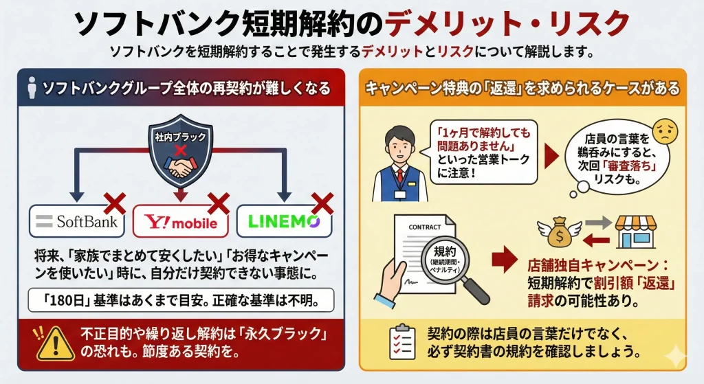 ソフトバンクを短期で解約することには、コスト以上のデメリットが存在します。