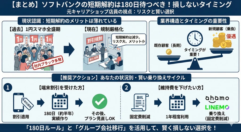 【まとめ】ソフトバンクの短期解約は180日待つべき!損しないタイミング