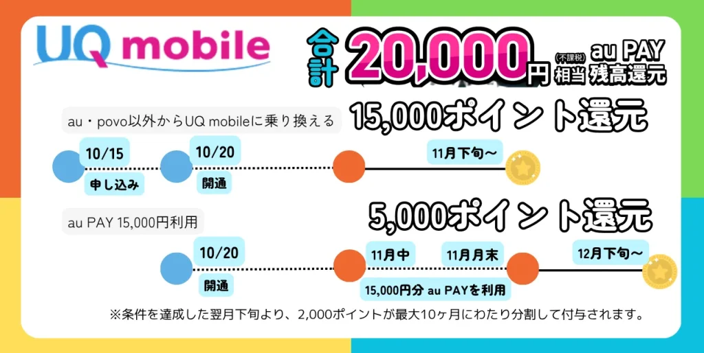 2025年11月 UQモバイル 乗り換えキャンペーン 最大20,000円相当(不課税)還元